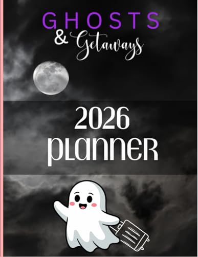 This Ghosts & Getaways 2026 planner will help you plan your paranormal travel adventures and keep up with the things you don't want to forget! You will find pages for your goals, bucket list, travel checklist, notes, AND pages to document your paranormal experiences.